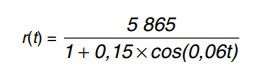 Um satélite de telecomunicações, t minutos após ter atingido sua órbita, está a r quilômetros de distância do centro da Terra. Quando r assume seus valores máximo e mínimo, diz-se que o satélite atingiu o apogeu e o perigeu, respectivamente. Suponha que, para esse satélite, o valor de r em função de t seja dado por