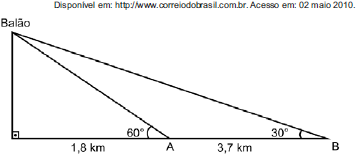 Na data do acontecido, duas pessoas avistaram o balão. Uma estava a 1,8 km da posição vertical do balão e o avistou sob um ângulo de 60°; a outra estava a 5,5 km da posição vertical do balão, alinhada com a primeira, e no mesmo sentido, conforme se vê na figura, e o avistou sob um ângulo de 30°.