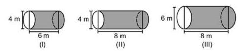 Uma empresa vende tanques de combustíveis de formato cilíndrico, em três tamanhos, com medidas indicadas nas figuras. O preço do tanque é diretamente proporcional à medida da área da superfície lateral do tanque. O dono de um posto de combustível deseja encomendar um tanque com menor custo por metro cúbico de capacidade de armazenamento.