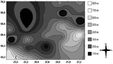 A figura a seguir é a representação de uma região por meio de curvas de nível, que são curvas fechadas representando a altitude da região, com relação ao nível do mar. As coordenadas estão expressas em graus de acordo com a longitude, no eixo horizontal, e a latitude, no eixo vertical. A escala em tons de cinza desenhada à direita está associada à altitude da região.