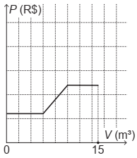 • Faixa 3: para consumo superior a 10 m3, tarifa de R$ 6,00 por metro cúbico ao que exceder a 10 m3. Sabe-se que nessa cidade o consumo máximo de água por residência é de 15 m3 por mês.
