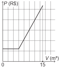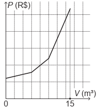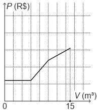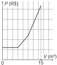 O gráfico que melhor descreve o valor P, em real, a ser pago por mês, em função do volume V de água consumido, em metro cúbico, é