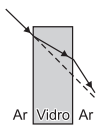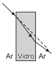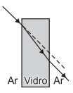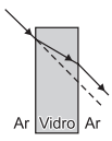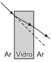 O feixe de um laser incide obliquamente na lateral de uma janela de...
