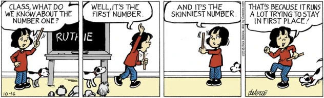 No quadrinho abaixo, a instrutora quer incentivar a corrida, ao descrever o número 1. Assinale a alternativa que resume a mensagem passada por ela, por meio do uso de zero conditional.
